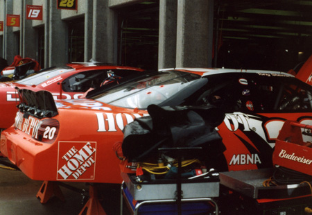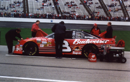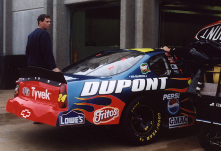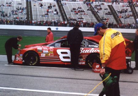 It must have been a Monday, because when I decided to put my money in the Bobby Labonte Coke machine, it was empty (guess everyone felt as sorry for him as I did). I tried three other machines before I got one to give me a Coke (Bill Elliott!). I stuck it in my pocket and headed off for Dale Jr.'s pit.