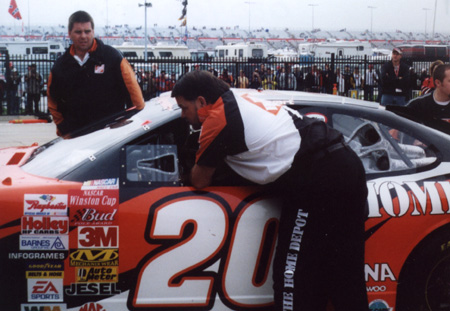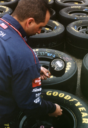 As soon as the car had left pit road, Tony Eury Sr. turned to the crew and said, "Who didn't bring the tire back?" When one of the rear tire changers 'fessed up, Tony Sr. said angrily, "Don't let that happen again! That's a 15-second penalty. Get that f-----g tire back over here where it's supposed to be!"
