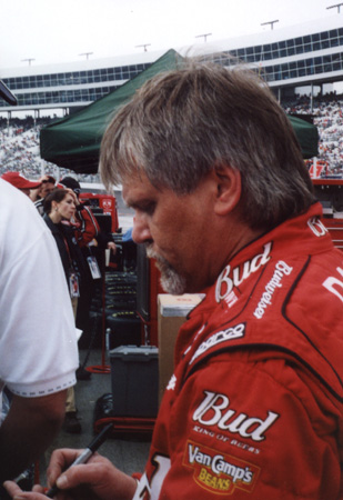 In the post inspection lull, I got the autographs of Danny "Chocolate" Meyers (I should have had him sign my #3 hat!), Tony Eury Sr. (I should have had him sign my pit pass!), and David Green (he was hanging around all weekend -- guess he was working on getting another Cup ride).